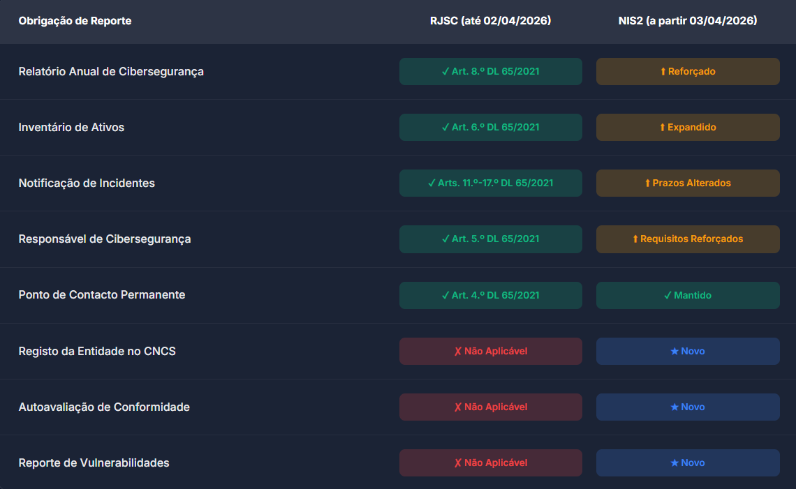 Análise comparativa das obrigações de reporte no atual RJSC e no futuro regime decorrente da transposição da Diretiva NIS2 (Decreto-Lei n.º 125/2025).